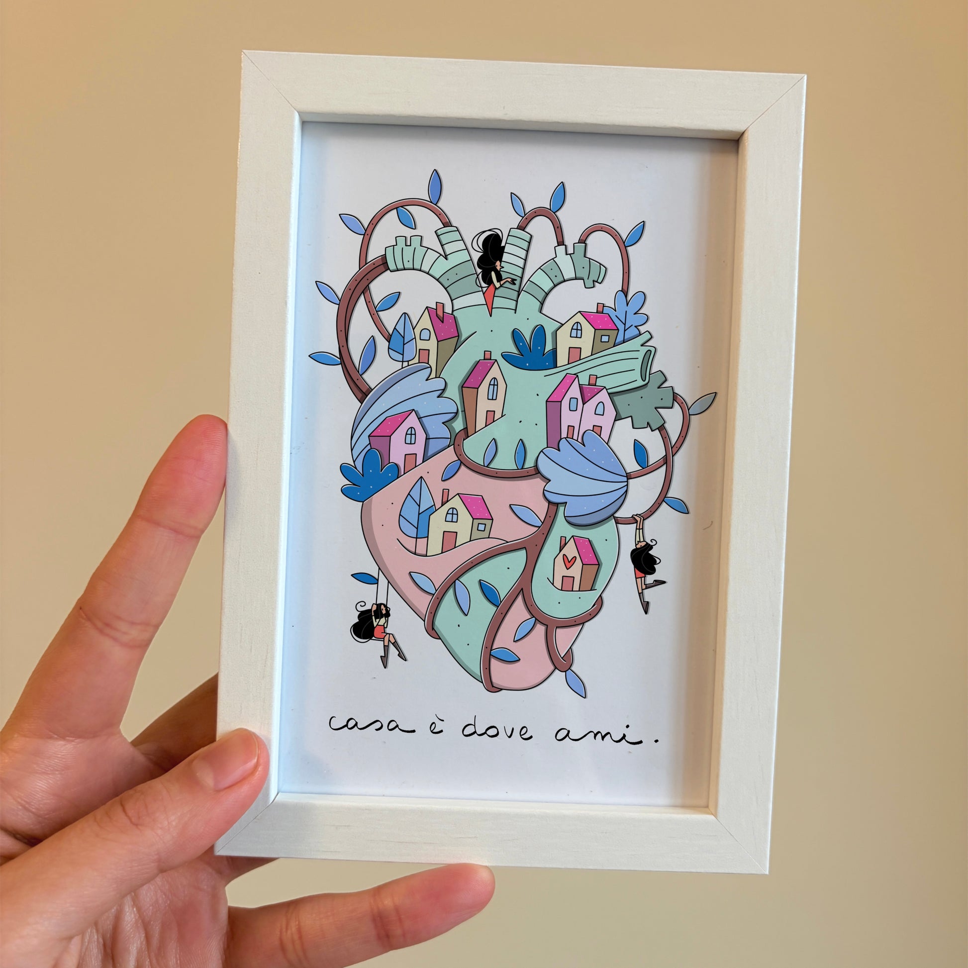 Piccola stampa su cartoncino con cornice 10x15 cm da tavolo o da appendere. Firmata a mano. Puoi scegliere tra 8 diversi soggetti. :)